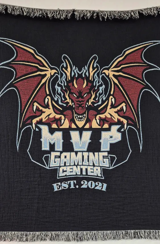 One of the major benefits of working with a small business instead of giganta-corps is that we can help with special projects. For example, a young lady came to us with the family crest image you see on the left, which was far too pixelated and low-resolution to make into a blanket. When our usual photo editing tricks didn't work, we took it to the next level and roped in one of our talented artists, who painstakingly recreated the crest by hand. (Please note that art fees vary in these types of scenarios.) He delivered a digital file that not only resulted in a beautiful blanket but that the client could use for all kinds of other purposes!