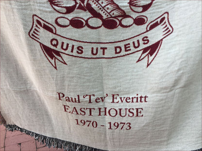 A stunning 50" x 60" custom woven blanket incorporating the logo of this prestigious school in South Africa, personalized with the name of the House, the student name (optional), and the years attended.